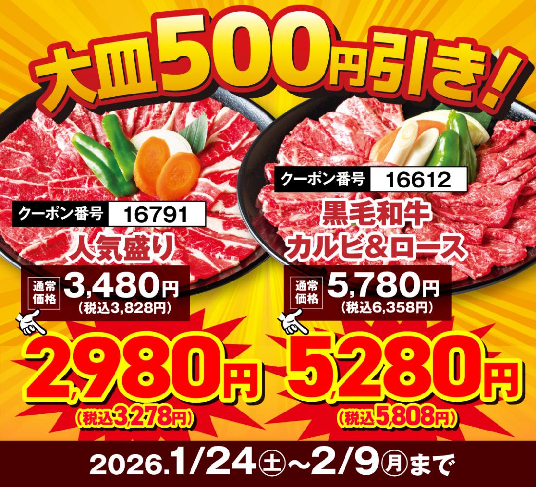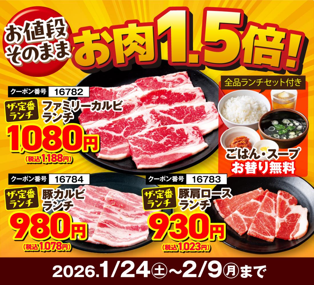1月24日~スタート!【1月29日&2月9日は“W肉の日”】17日間の”肉の日リレーフェア”開催!【焼き肉レストラン 安楽亭  浦和西堀店】